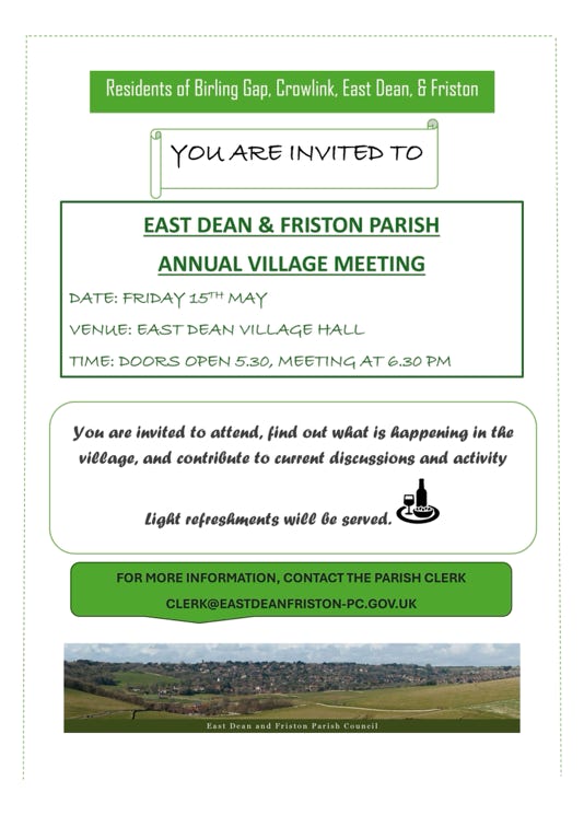 Our East Dean and Friston Residents Association have exciting and ambitious plans to further enhance our wonderful environment but we need you to get involved! If you have any ideas you want to put forward or want to volunteer in any way to help make things happen please drop us an email at